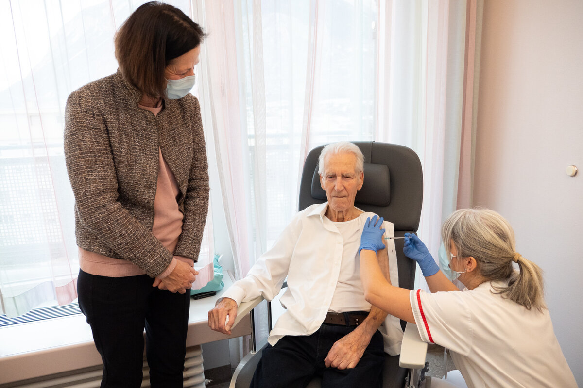 Après les cinq personnes vaccinées lundi à Martigny, les patients de Sierre et Brigue ont pu bénéficier de cette vaccination en présence de Mme la conseillère d’Etat Esther Waeber-Kalbermatten venue assister au lancement de cette campagne, qui se poursuit également à la clinique Saint-Amé, à Saint-Maurice.