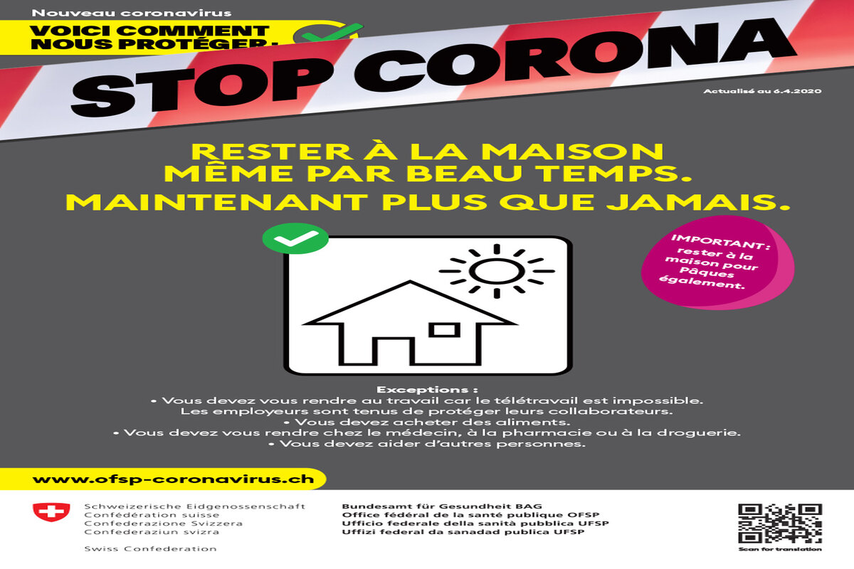- Restez à la maison, en particulier si vous êtes âgé ou malade. Sauf si vous devez aller au travail et ne pouvez pas travailler à domicile; sauf si vous devez aller chez le médecin ou à la pharmacie ; sauf si vous devez faire les courses ou aider quelqu’un.