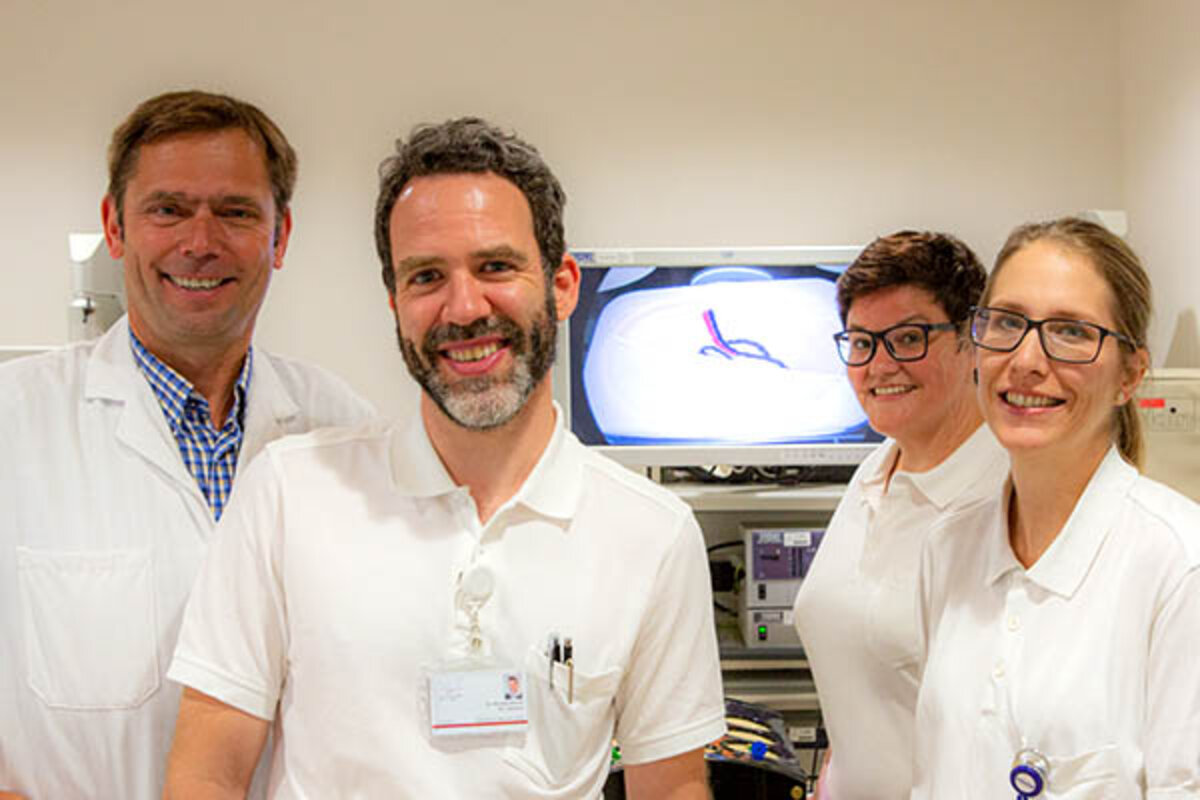 Des études scientifiques montrent que la qualité des traitements et la sécurité des patients peuvent être considérablement améliorées grâce à des simulations de situations pratiques réalistes. En outre, de telles structures de formation constituent une demande toujours plus importante de la FMH, l’organisation faîtière du corps médical suisse. Pour ces raisons et à l’initiative des docteurs Simon et Johann, les deux cliniques et leurs services de chirurgie générale et viscérale et de gynécologie ont mis en place ce lieu d’entraînement et élaboré un plan d’entraînement pour soutenir une formation optimisée des médecins. Avec le Dr Michael Benoit, médecin-chef adjoint de la Clinique de chirurgie et la Dre Sarah In-Albon, médecin-cheffe dans le Service de gynécologie, d’autres compétences spécialisées ont été engagées dans le cadre de ce projet.