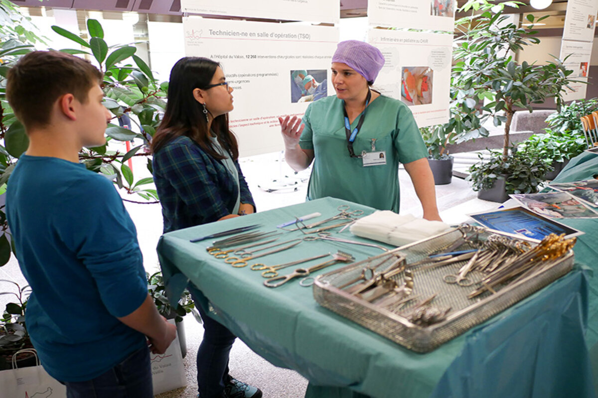 Cette mise en visibilité des professions de la santé, gérée par le Centre francophone de formation HVS, fait partie des missions formatrices de l’Hôpital du Valais et s’effectue en partenariat avec les conseillers en orientation dans les écoles.